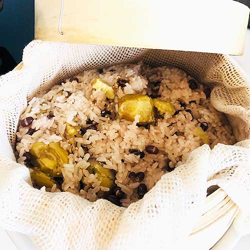 少ない分量でも失敗しないのがせいろのお赤飯です。