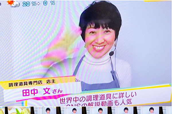 ↑この「世界中の調理道具に詳しい」(-_-;)という真偽はともかく….「調理道具専門店」とは紹介されるもののNHKさんなのでお店の名前はでません。なのでせめてもの抵抗にエプロンを着て登場。笑)