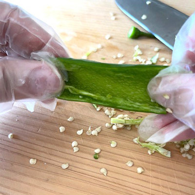 ③青唐辛子は種を外して細かくカット