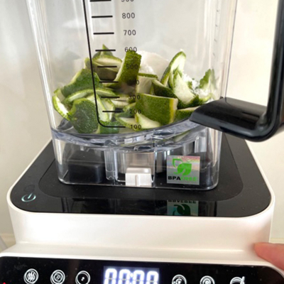 ②柚子の皮をむいて細かくカット