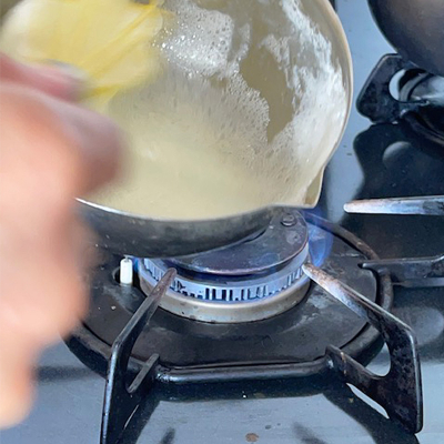 火が通り過ぎない程度に泡立てます。