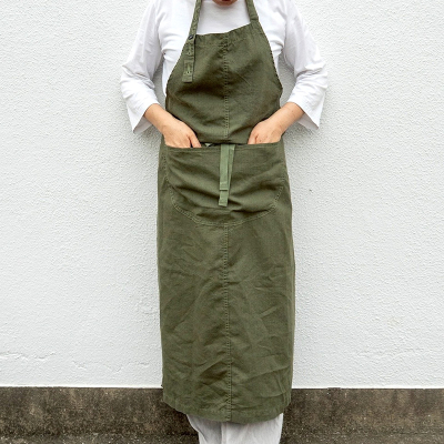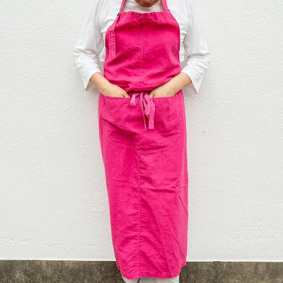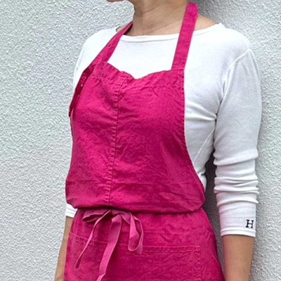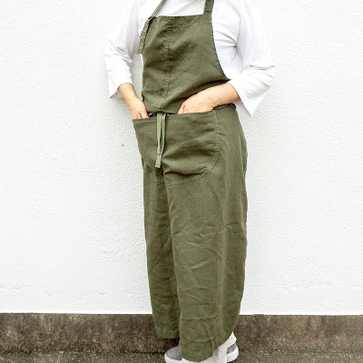 大量生産とは全く違う、【職人さんによる丁寧な縫製】、【上質なリネン素材】と【美しい染色】、そして【服のように仕立てられたシルエット】の魅力が感じられるエプロンです。