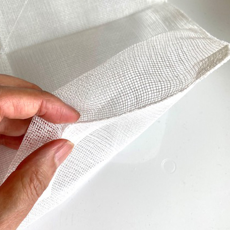 綿・麻ともに、天然繊維100%なので化学繊維に比べ熱など のダメージに強いのも特長。ふきんとして水気を拭くだけでなく、お弁当包みとして使っていただいたり、野菜を水にさらす、出汁を漉すなどの用途にも便利。やがては台拭きを経て雑巾になるまで、長くお使いいただけます。