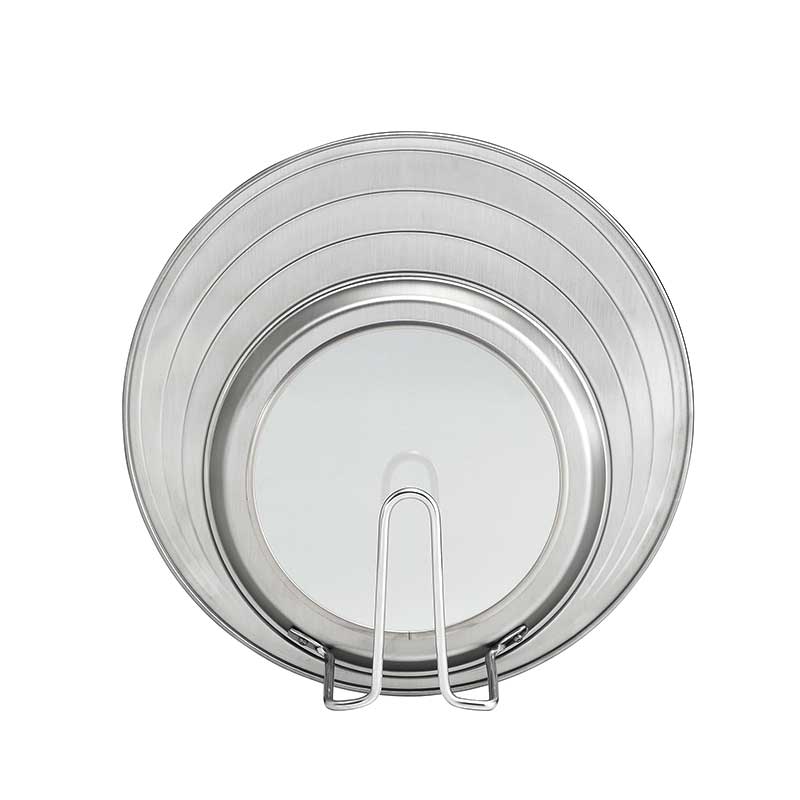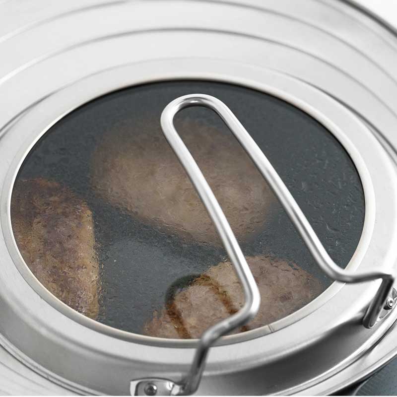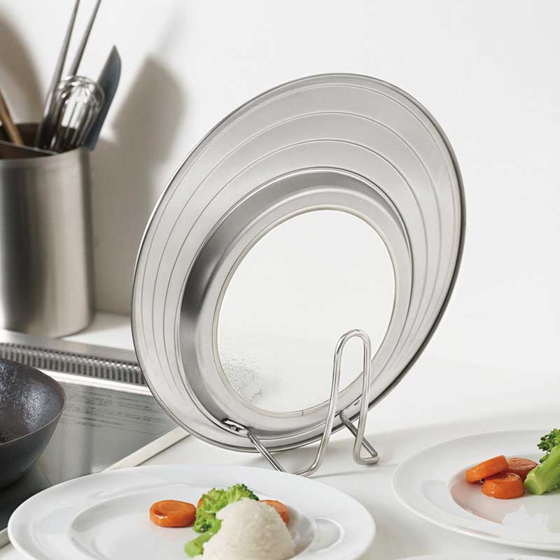20・22・24・26cmのフライパンに対応。ガラス窓付きなので、フライパンカバーをしながら中の食材の状態を確認できます。自立するので調理中の置き場所に困りません。