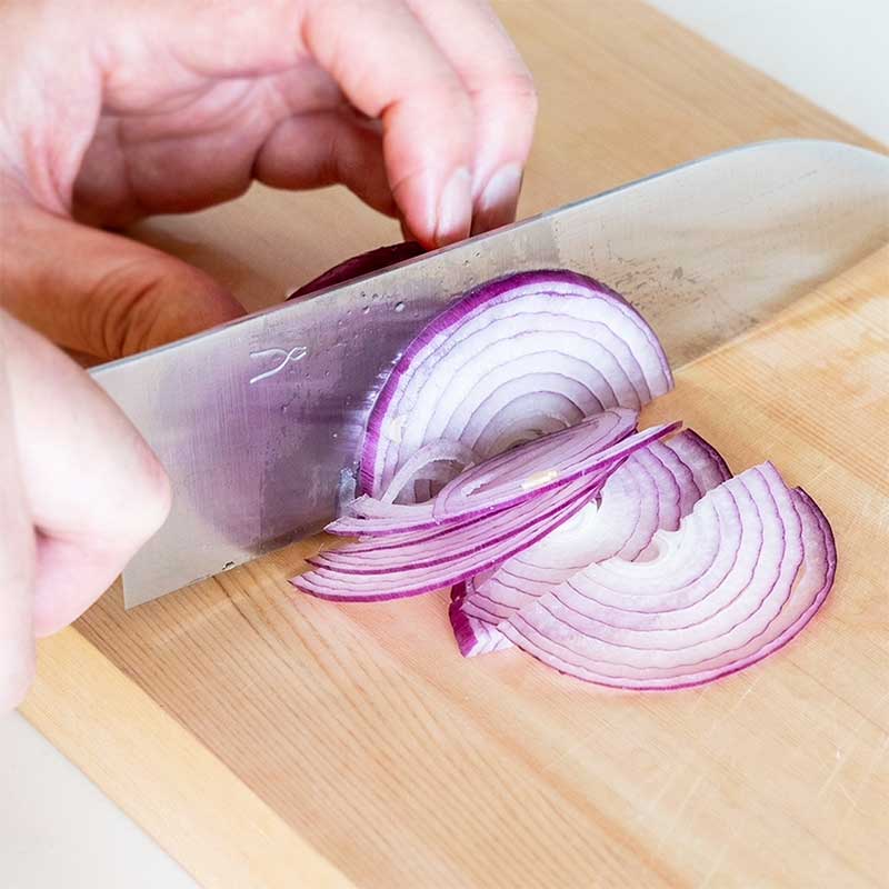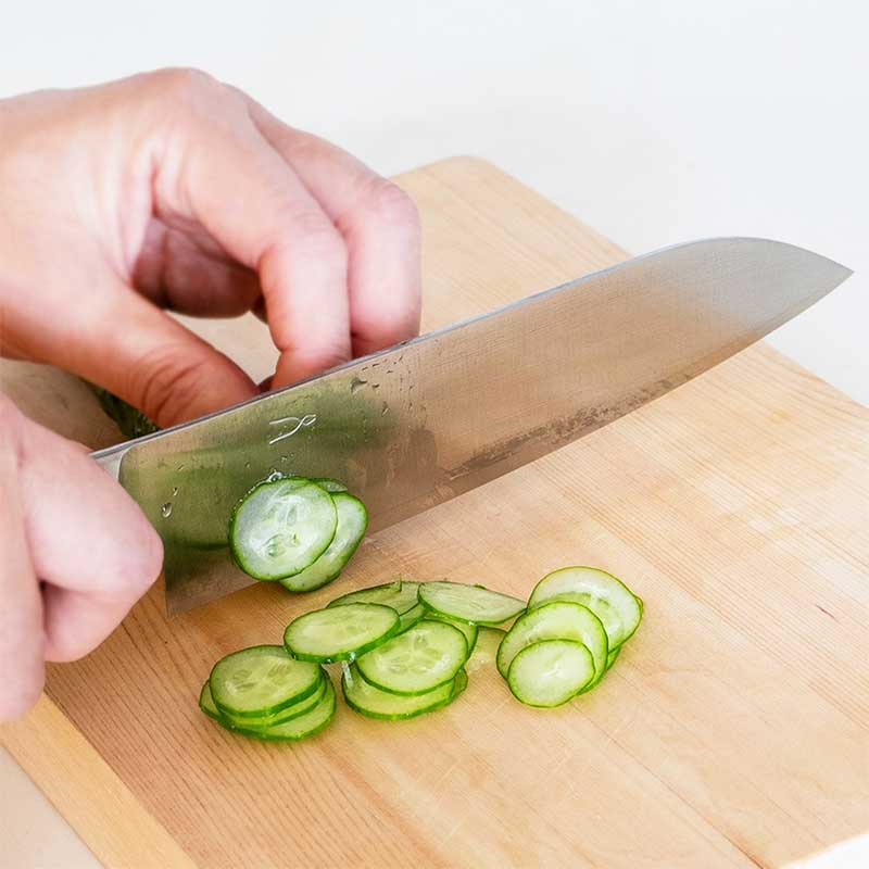 キャベツの千切り、キュウリやトマトの輪切りなど、鋼ならではの刃の鋭さでスムーズに素材に刃先がはいり楽しくなります。栗の木を使った取手のバランスも良く、長時間使っても疲れません。